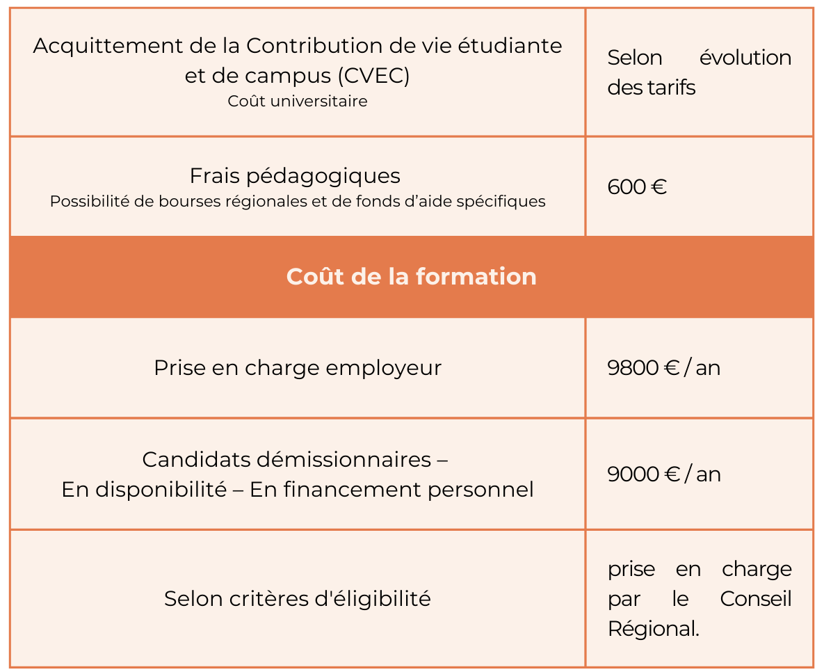 Possibilité de bourses régionales et de fonds d’aide spécifiques pour plus d’informations juste ici.