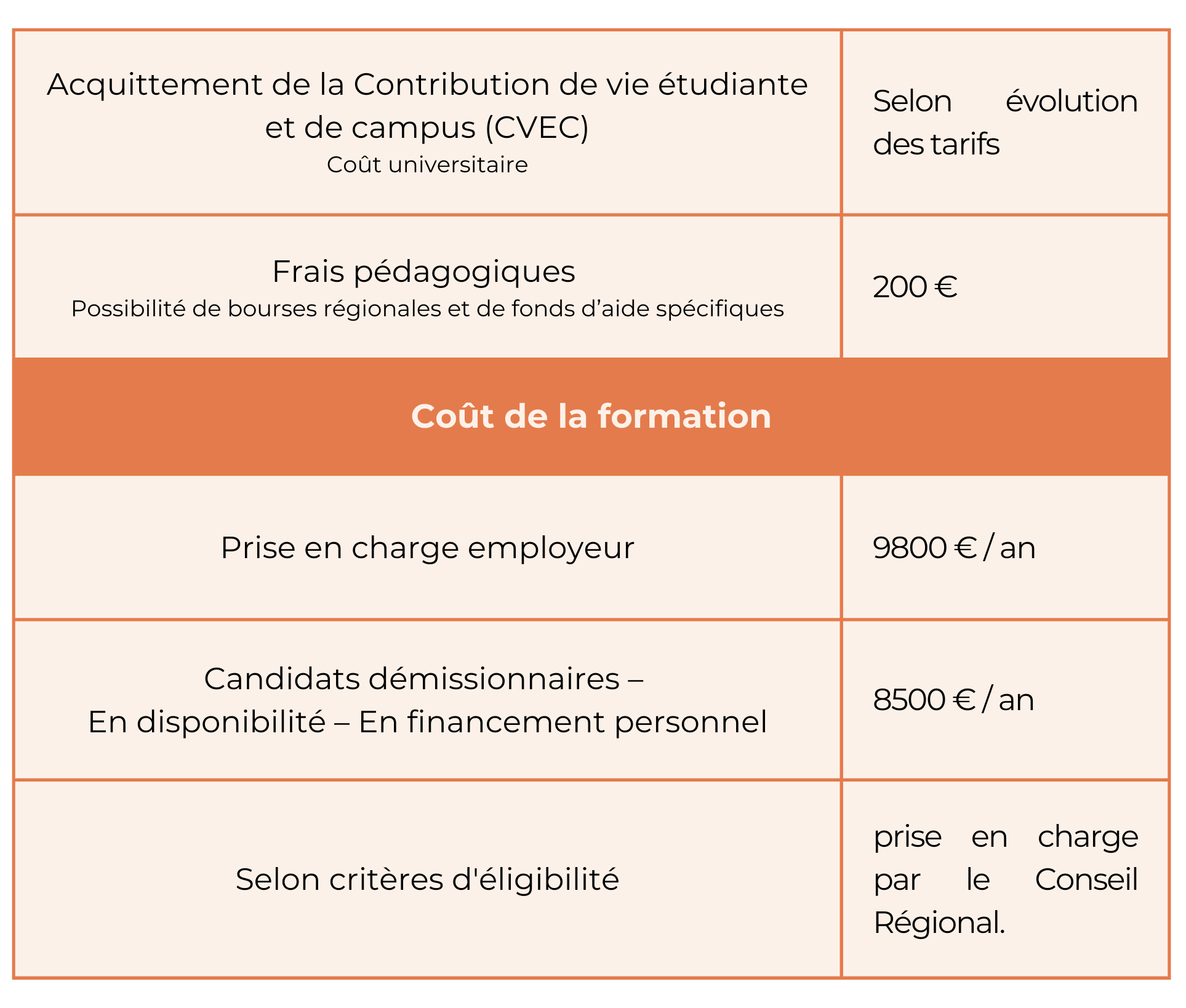 Possibilité de bourses régionales et de fonds d’aide spécifiques pour plus d’informations juste ici.